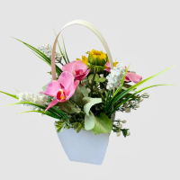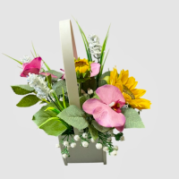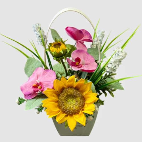 گل مصنوعی مناسبتی همراه گلدان دسته دار چوبی