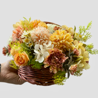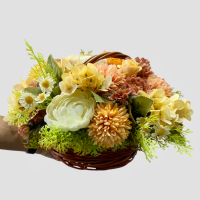 گل داوودی ترکیبی مصنوعی همراه سبد چوبی دسته دار