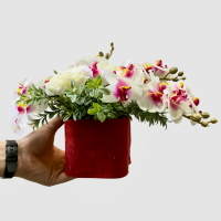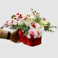 گل ارکیده مصنوعی همراه جعبه جوبی روکش دار