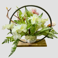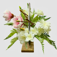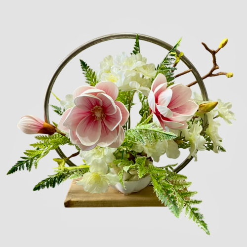 گل مگنولیا صورتی و ارکیده سفید مصنوعی همراه گلدان فانتزی