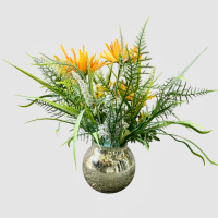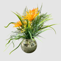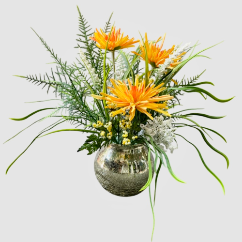 گل داوودی نارنجی مصنوعی همراه گلدان شیشه ای