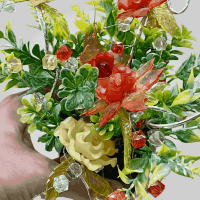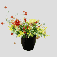 گل شیشه ای مصنوعی همراه گلدان سرامیکی