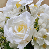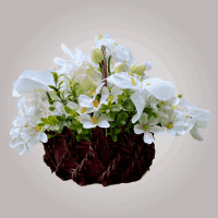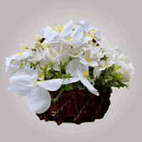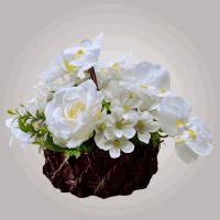 گل ارکیده سفید مصنوعی همراه سبد چوبی دسته دار