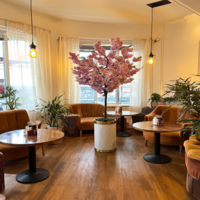 درختچه مصنوعی شکوفه گیلاس، ارتفاع ۱,۷۰ متر، گلدان فلزی